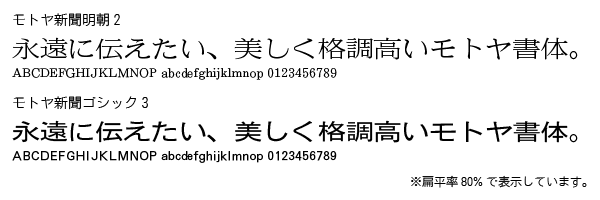 株式会社モトヤでは、「仮名フォント・数字フォント・新聞明朝2・新聞ゴシック3